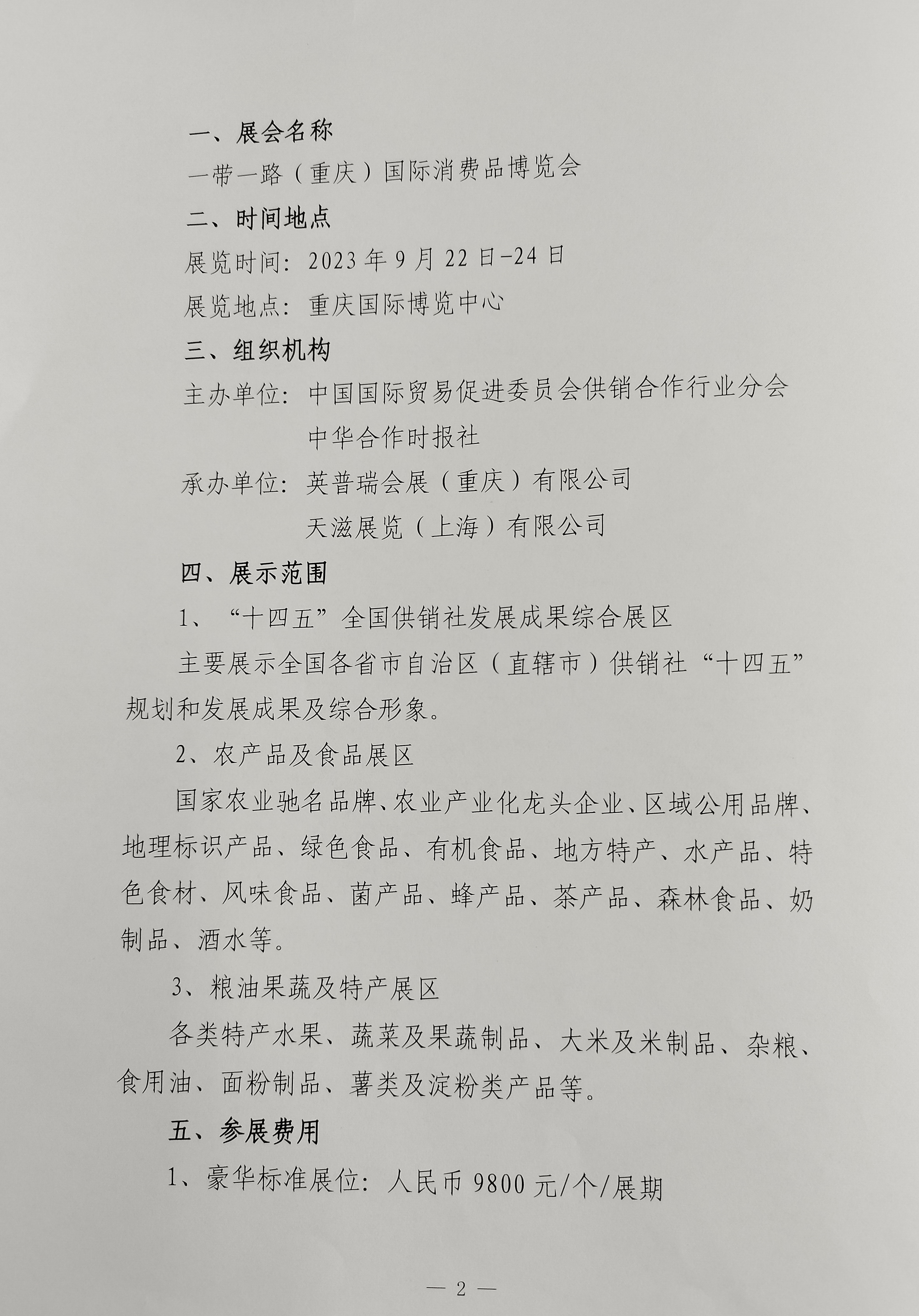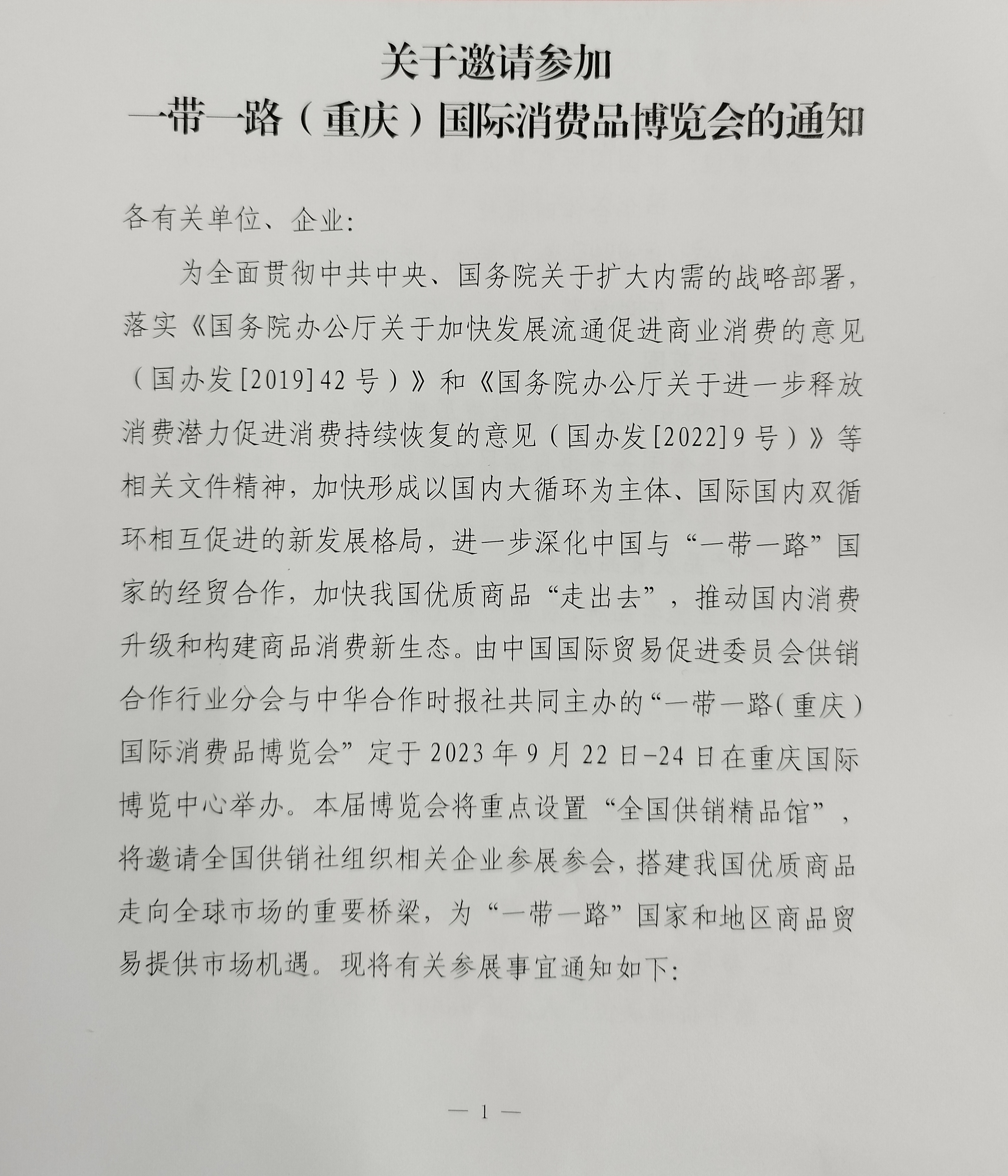 关于邀请参加一带一路(重庆)国际消费品博览会的通知