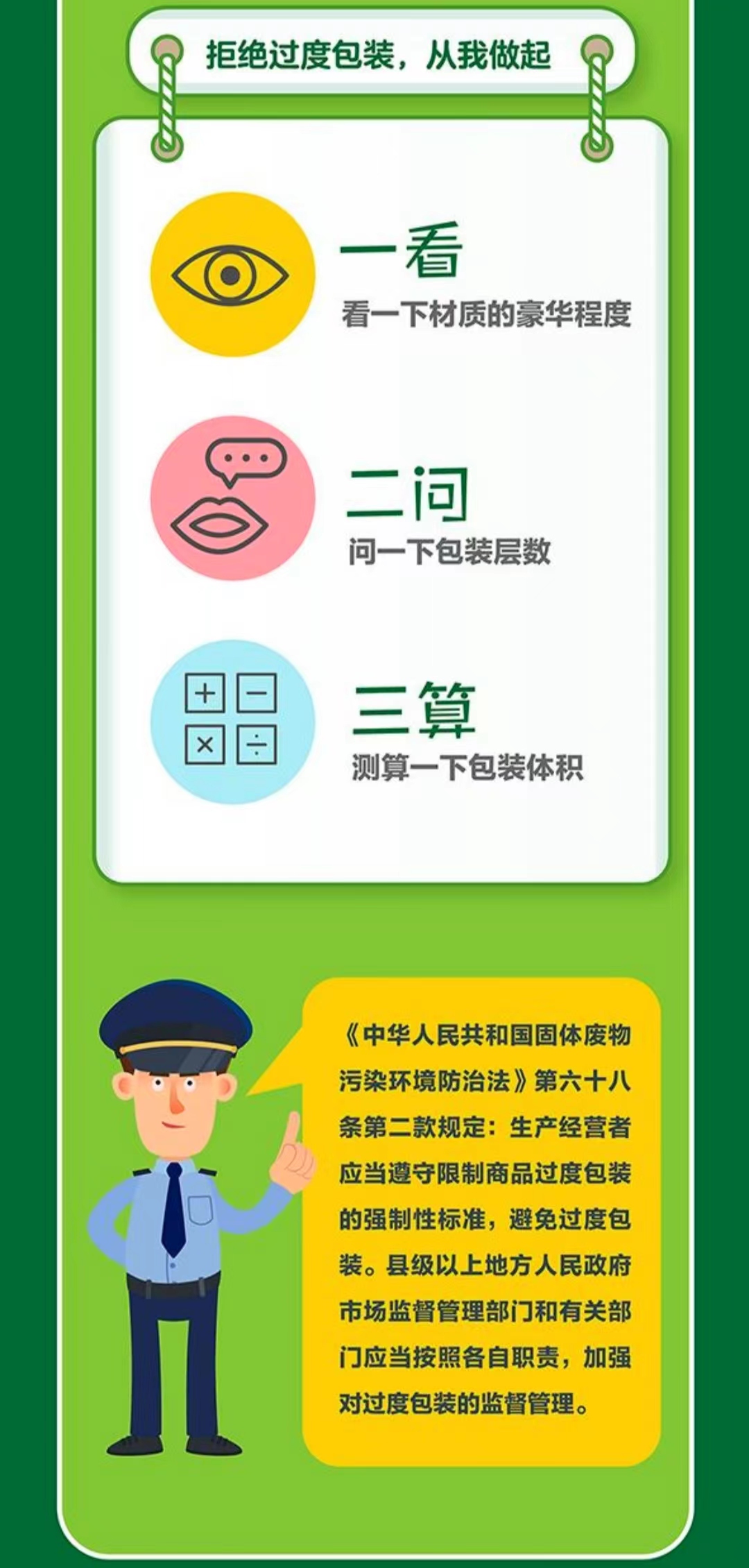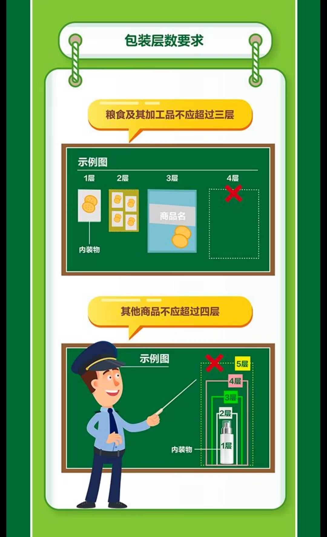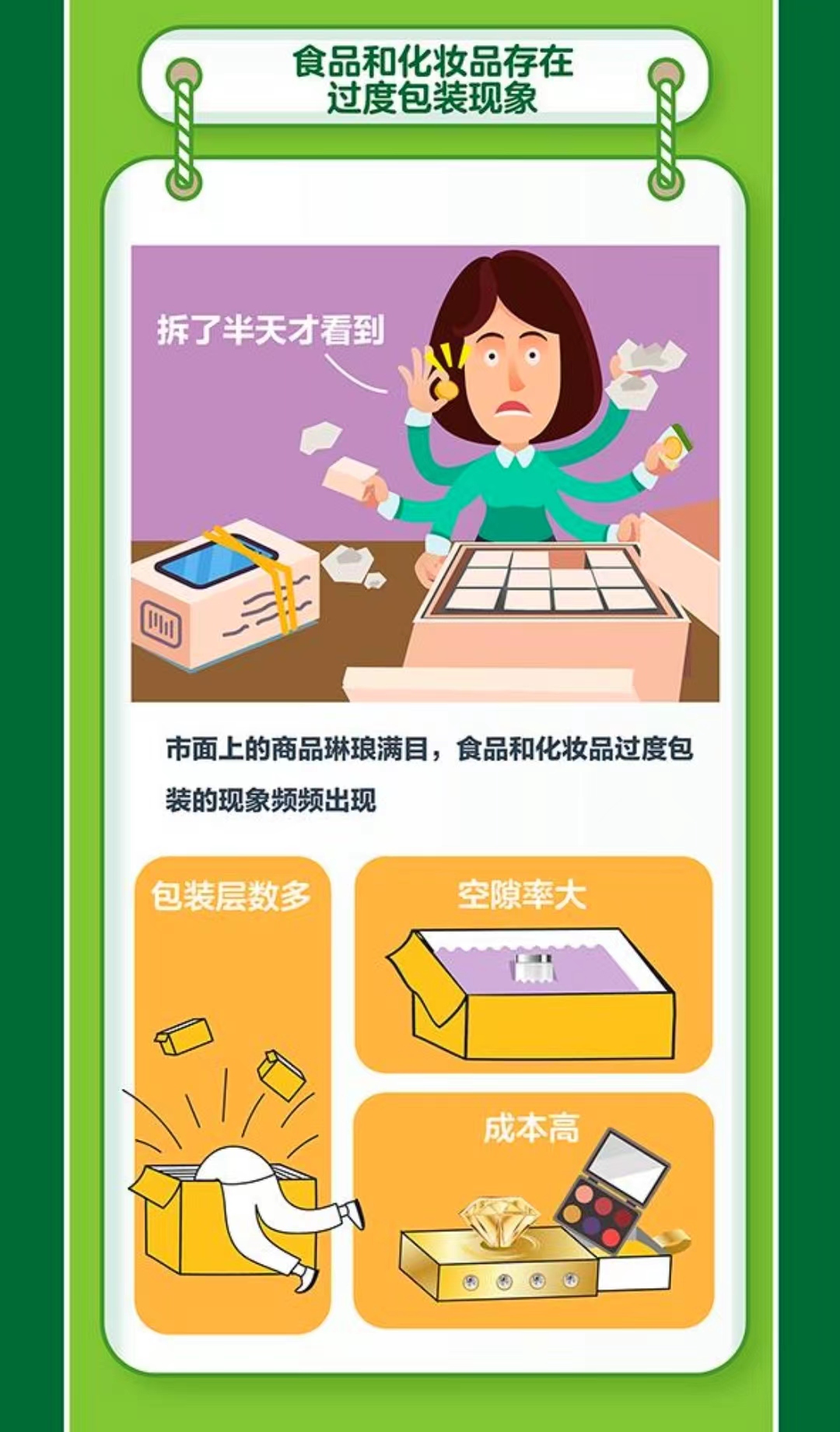 商品过度包装浪费资源、污染环境,为深入贯彻落实《国家标准化发展纲要》提出的高质量绿色低碳发展要求,督促企业使用简约适度、绿色低碳的包装设计,倡导消费者自觉抵制过度包装,国家市场监督管理总局、国家标准化管理委员会联合发布了GB 23350-2021《限制商品过度包装要求 食品和化妆品》强制性国家标准,并将于2023年9月起正式实施。什么是“商品过度包装”?如何识别商品是否存在过度包装?现在就让我们学习一下↓↓↓