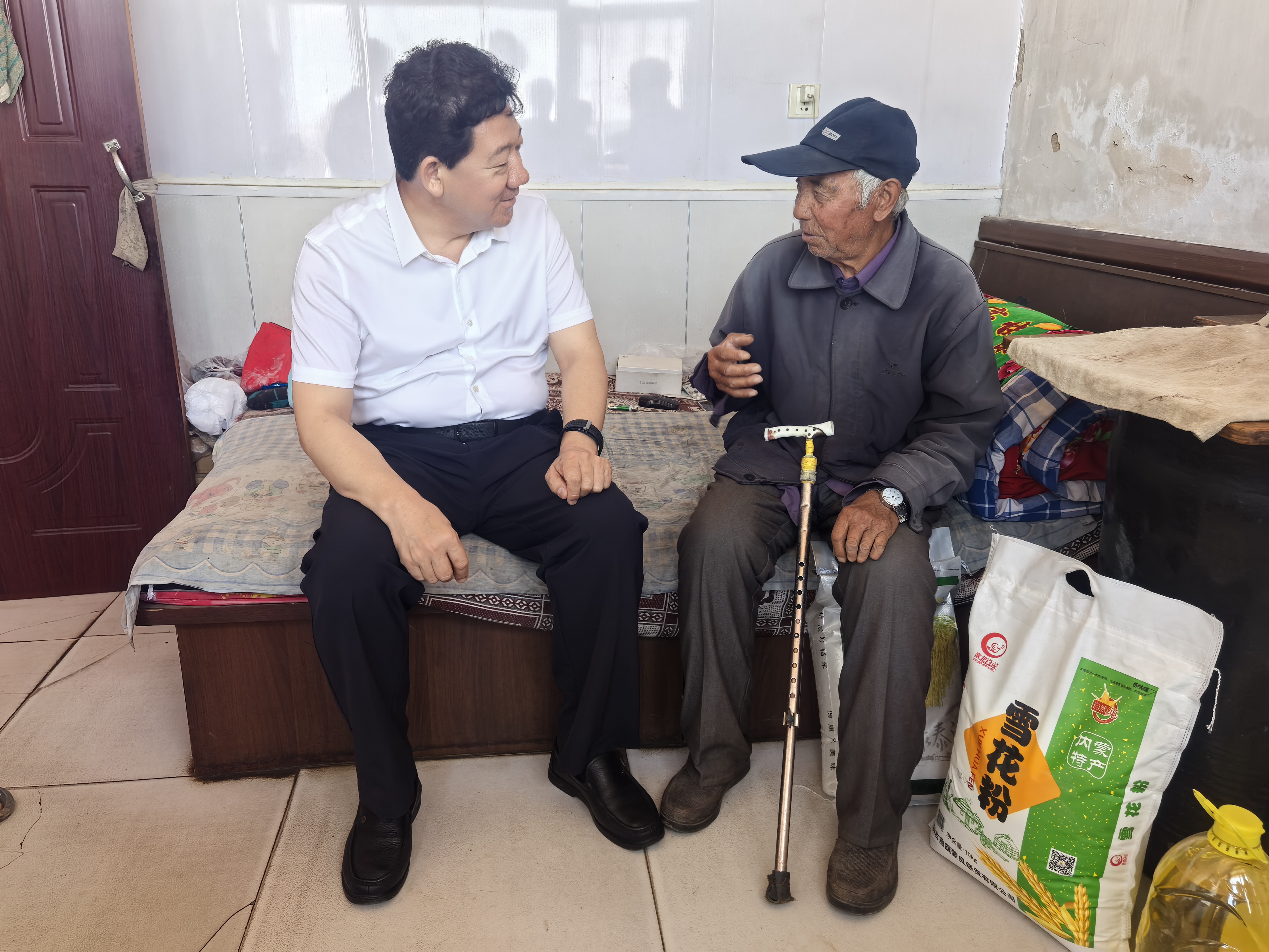 图为:乔允利看望并慰问沃图村村民郝志利