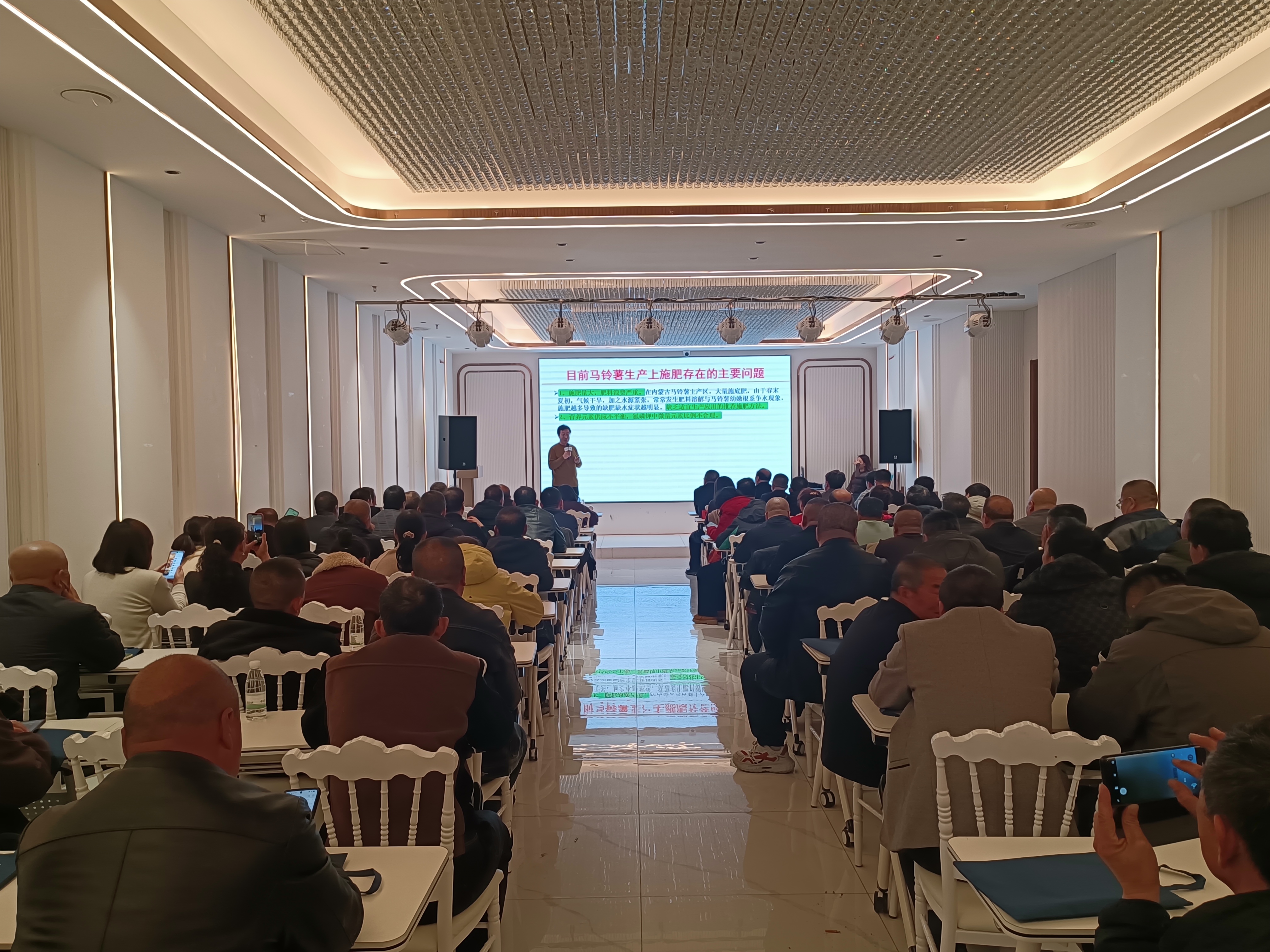 本次大讲堂特邀内蒙古农牧业科学院研究员,围绕区域主推作物栽培管理、病虫害绿色防控、测土配方施肥、水肥一体化等核心技术,结合本地气候与土壤特点,系统讲解科学种植关键要点,用通俗语言与实操案例破解种植难题。相关专家分别从新型肥料应用、农化服务落地、肥料科学选配与高效施用等方面进行专业解读,分享减肥增效、提质增收的实战经验。精准剖析当前马铃薯生产中施肥存在的突出问题,纠正重施、偏施、盲目施肥等常见误区;重点传授马铃薯科学施肥技术,围绕测土配方、基肥追肥配比、水肥一体化、绿色节本增效等关键技术进行实操指导,为种植户提供科学、实用、可落地的施肥方案。授课内容紧扣农户需求、突出实用导向,既有理论深度,又有操作温度,参训人员认真记录、积极互动,现场学习氛围浓厚。大家纷纷表示,本次培训干货满满、针对性强,有效解决了日常种植中施肥盲目、管理粗放等问题,为全年稳产增收打下坚实技术基础。
